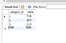 위와 같이 데이터가 저장되어 있고 boardRepository에서 findAll 쿼리를 실행하여 Category의 데이터를 참조하려고 할 때 어떤 일이 발생하는지 알아보겠습니다.