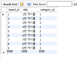 위 코드와 같이 1:N 관계를 가지는 카테고리와 게시글 테이블이 있다고 가정하겠습니다.
